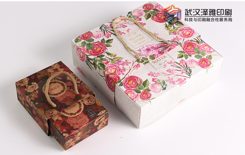 3、禮盒是只用印刷包紙的,裱紙是不會印刷的,較多也只是染色,因為禮盒是外包裝盒,所以印刷要求工藝很高,較忌諱顏色差異,墨點,爛版這些影響審美的缺點。
